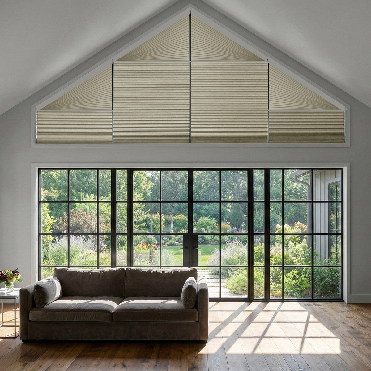 Motorized Custom Blackout Cellular Shades for Angled & Trapezoid Windows are the ultimate upgrade in window treatments, combining style, comfort, and functionality for modern homes. Designed specifically for trapezoid windows and other angled or slanted windows, these cellular shades provide complete blackout coverage, enhanced privacy, superior insulation, and year-round energy efficiency. Ideal for bedroom, media room, or kids' room, they bring effortless control and modern convenience to your home, even for high or hard-to-reach spaces.