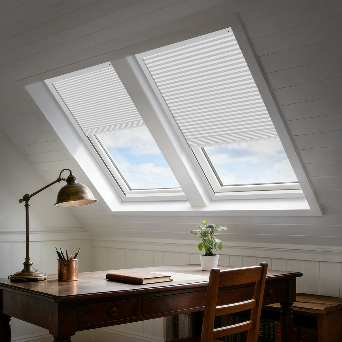 Motorized Blackout Skylight Cellular Shades are designed specifically for skylights and overhead windows, providing soft, diffused natural light while enhancing privacy and thermal insulation. Ideal for spaces that benefit from daylight without harsh glare, these shades gently filter sunlight to create a bright yet comfortable indoor atmosphere.