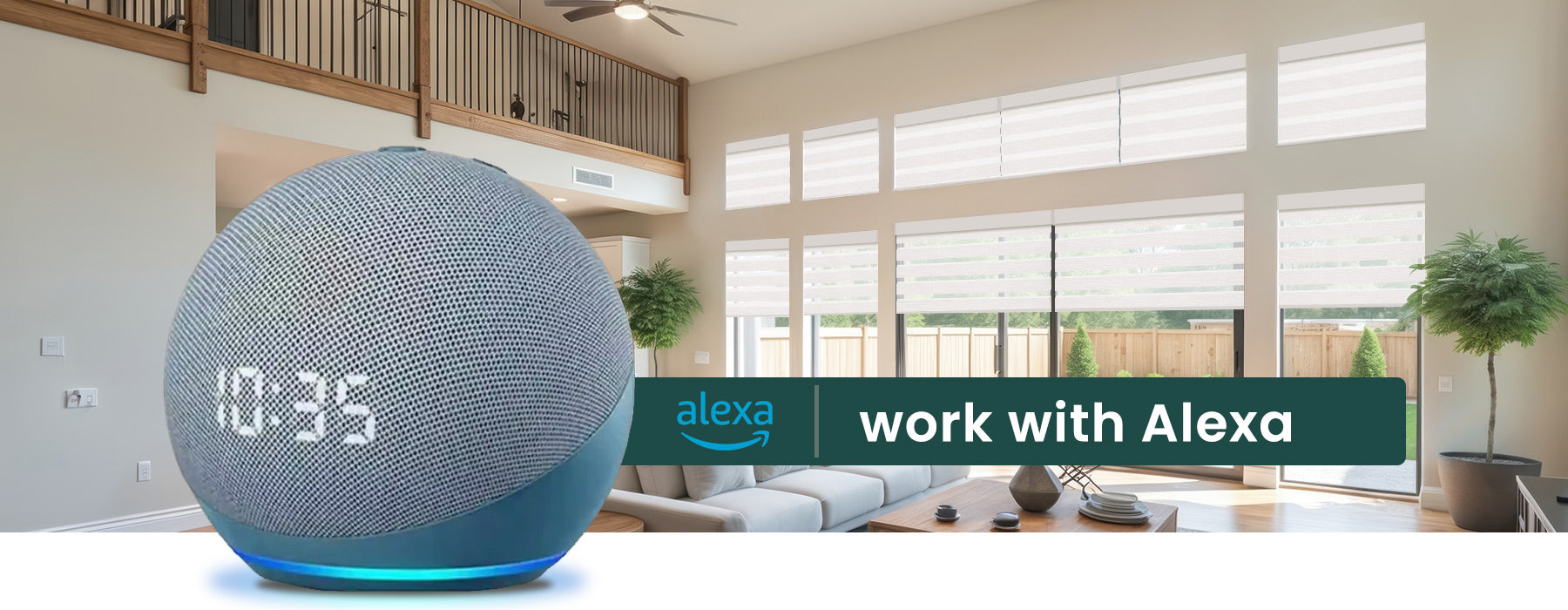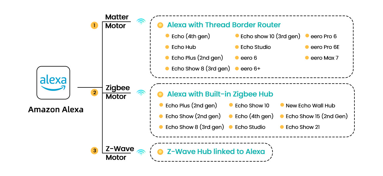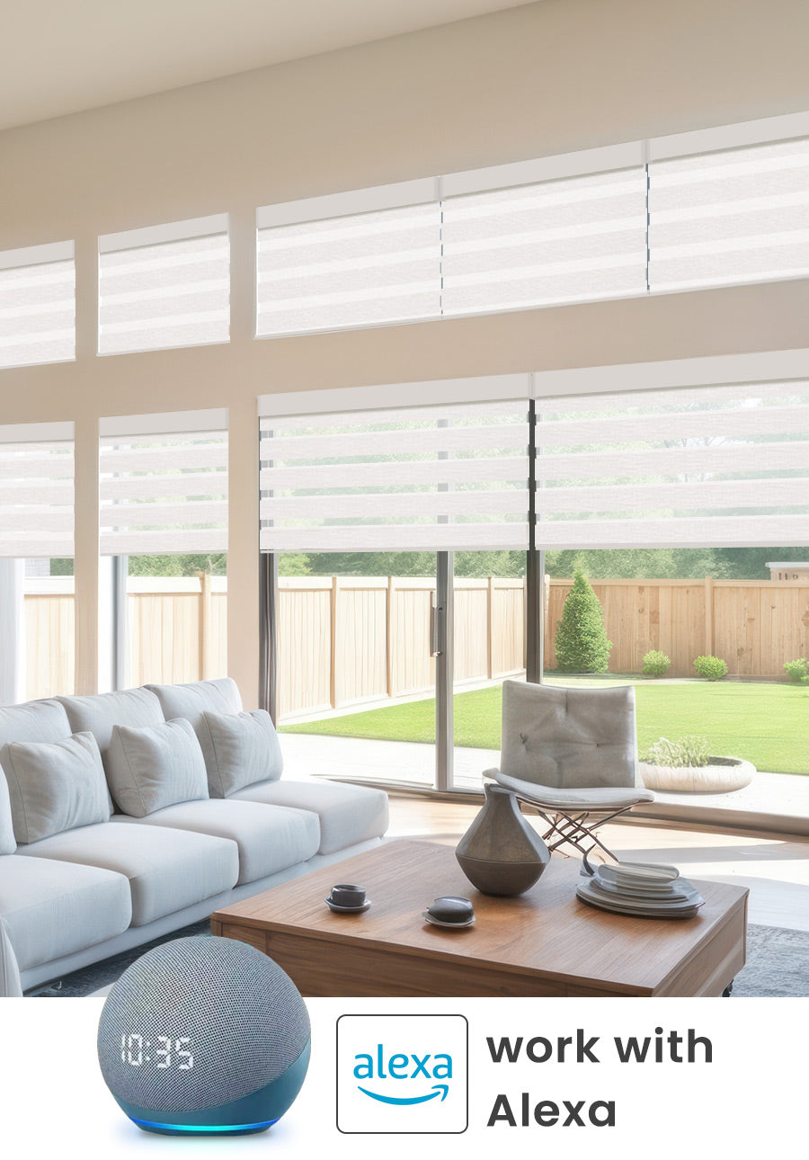 Weffort Smart Shades work with Amazon Alexa — supporting Matter and Zigbee so you can control your shades from anywhere using the Alexa app or voice. Adjust position, set schedules, create scenes and automations for effortless, intelligent shade control.