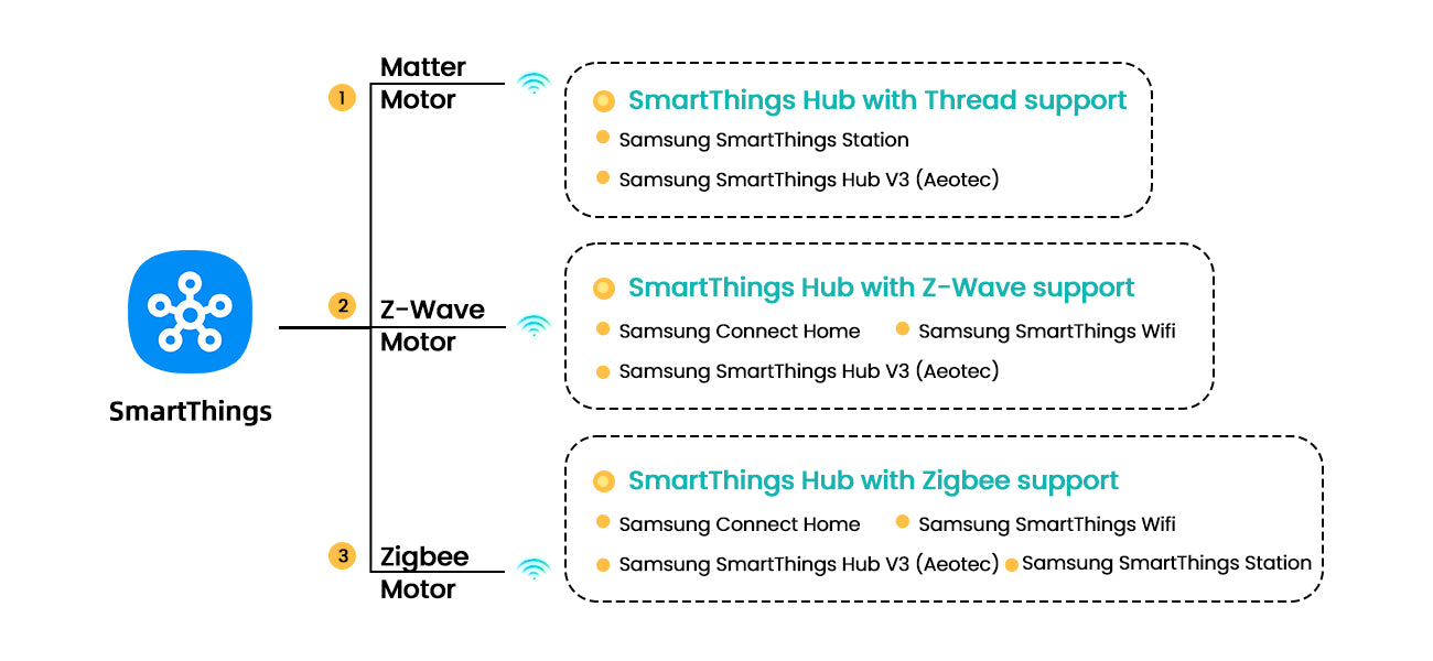 Compatible with Zigbee, Z-Wave, and Matter motors, it offers seamless app control, automation, and enhanced performance for a smarter, more comfortable home.