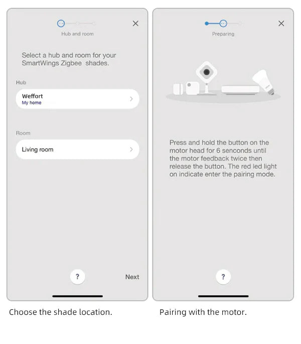 A light will flash, showing the shade is in pairing mode. Wait for pairing to complete.