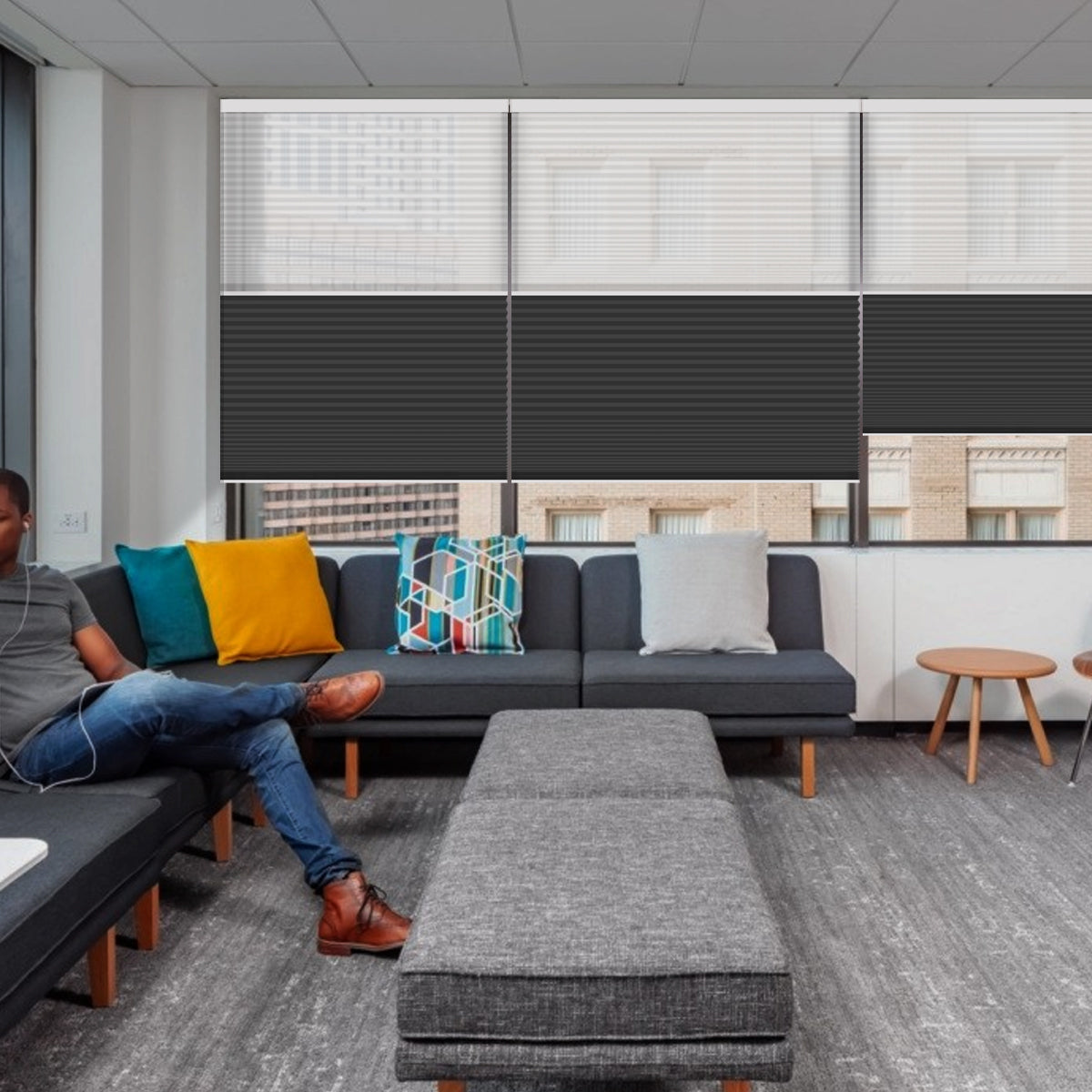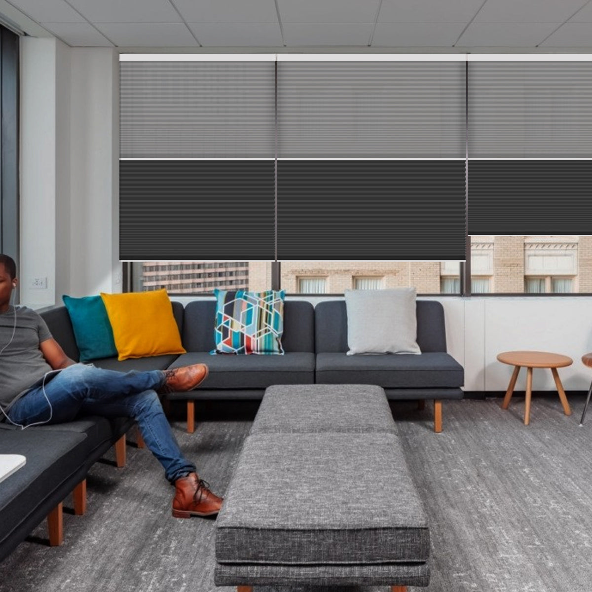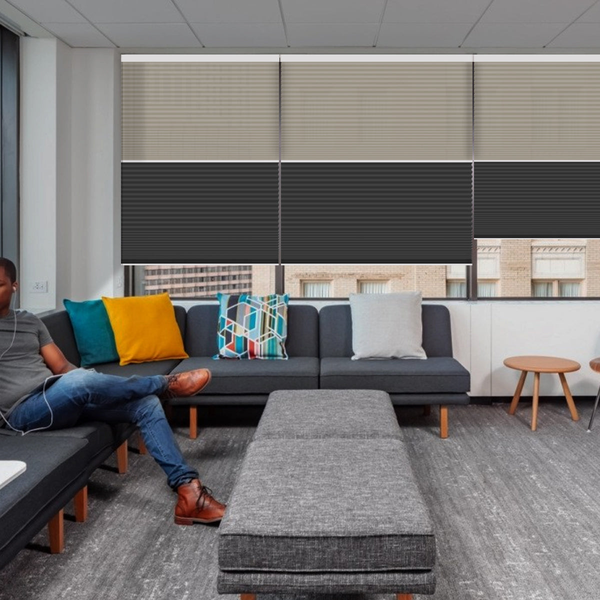 Weffort Motorized Blackout and Light Filtering Day/Night Suspended Cellular Shades Elegant Series
