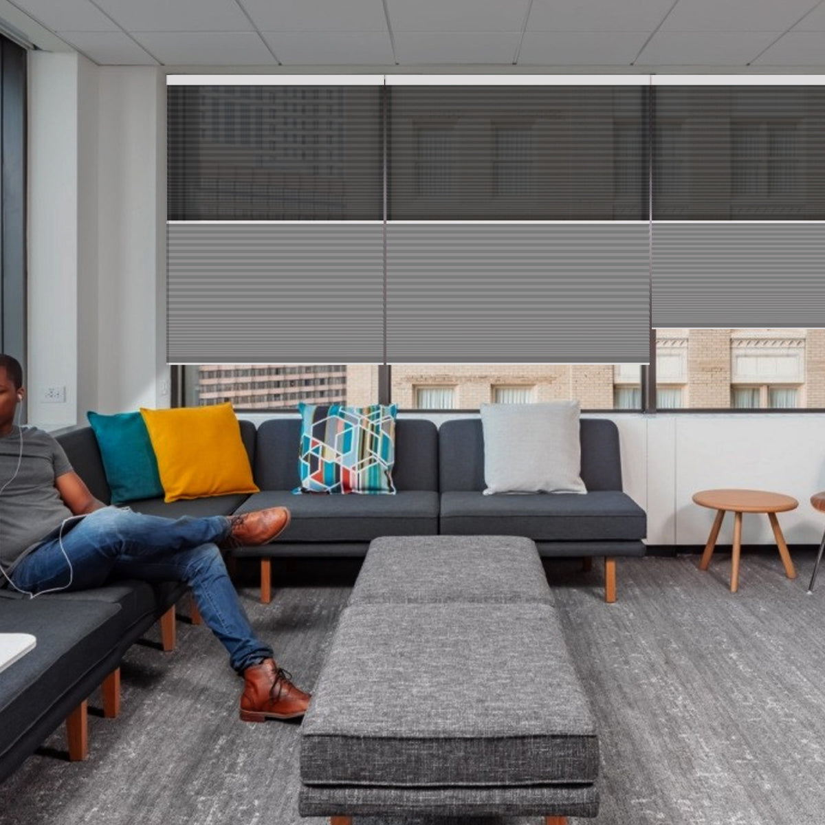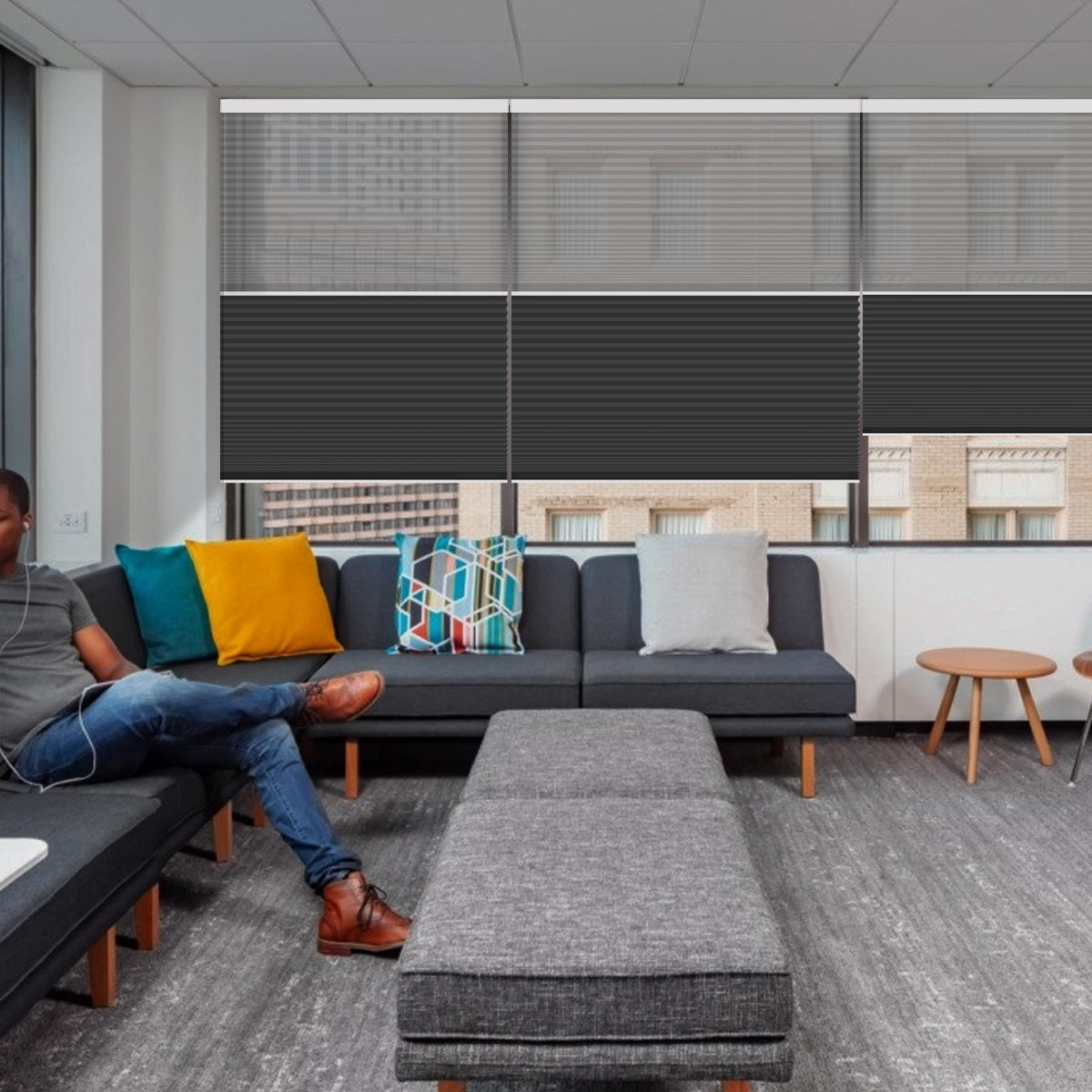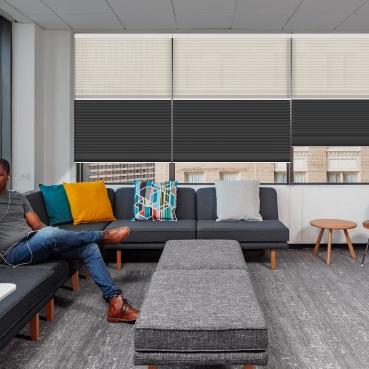 Weffort Motorized Blackout and Light Filtering Day/Night Suspended Cellular Shades Elegant Series
