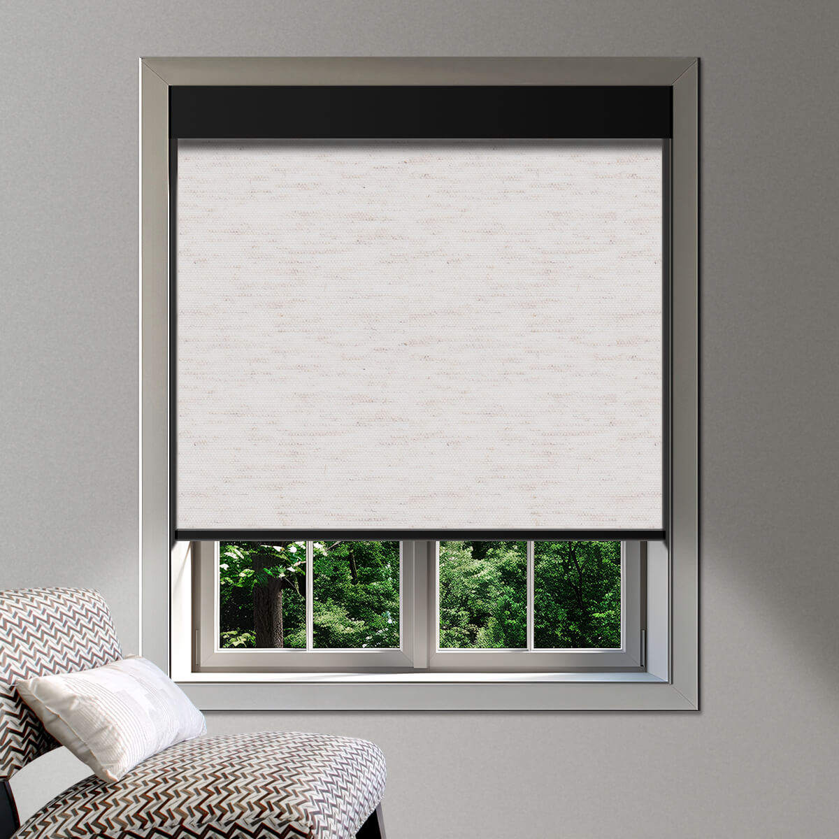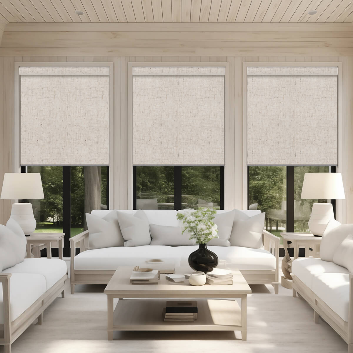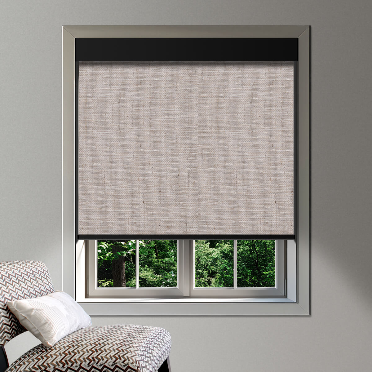 WEFFORT Motorized Roller Shades - Custom Size Blackout Blinds with Linen Texture