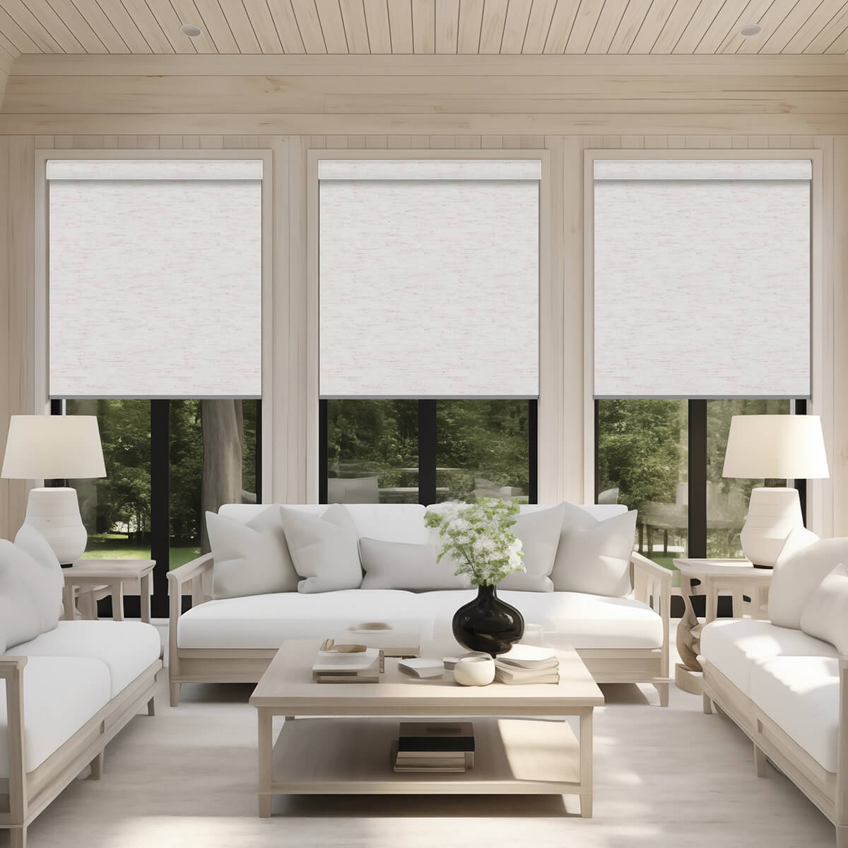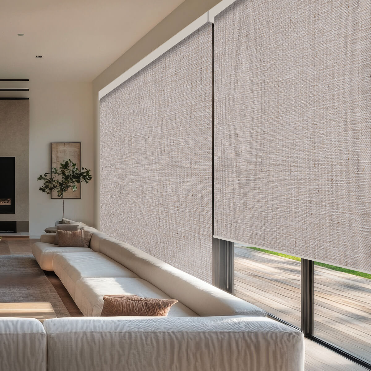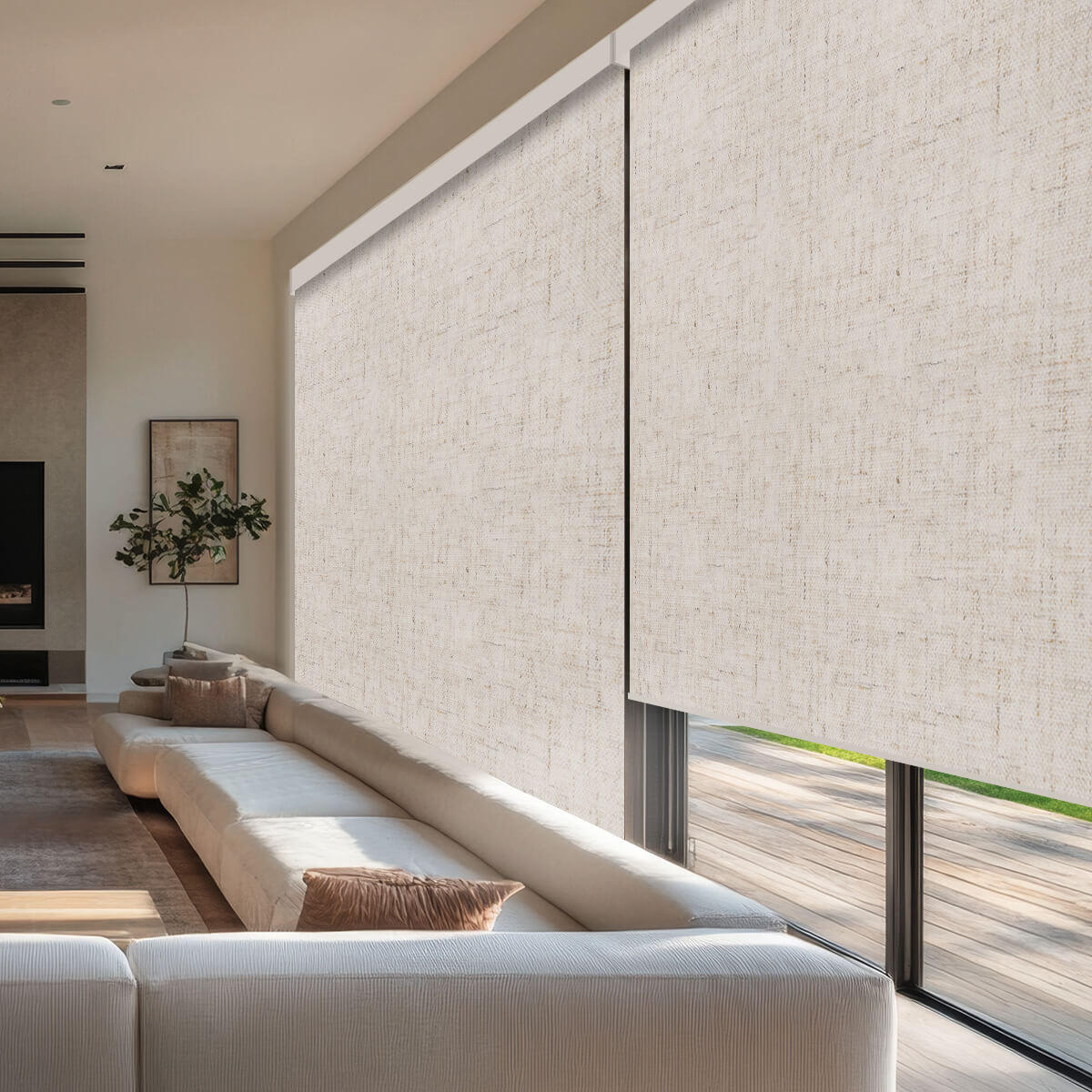 WEFFORT Motorized Roller Shades - Custom Size Blackout Blinds with Linen Texture