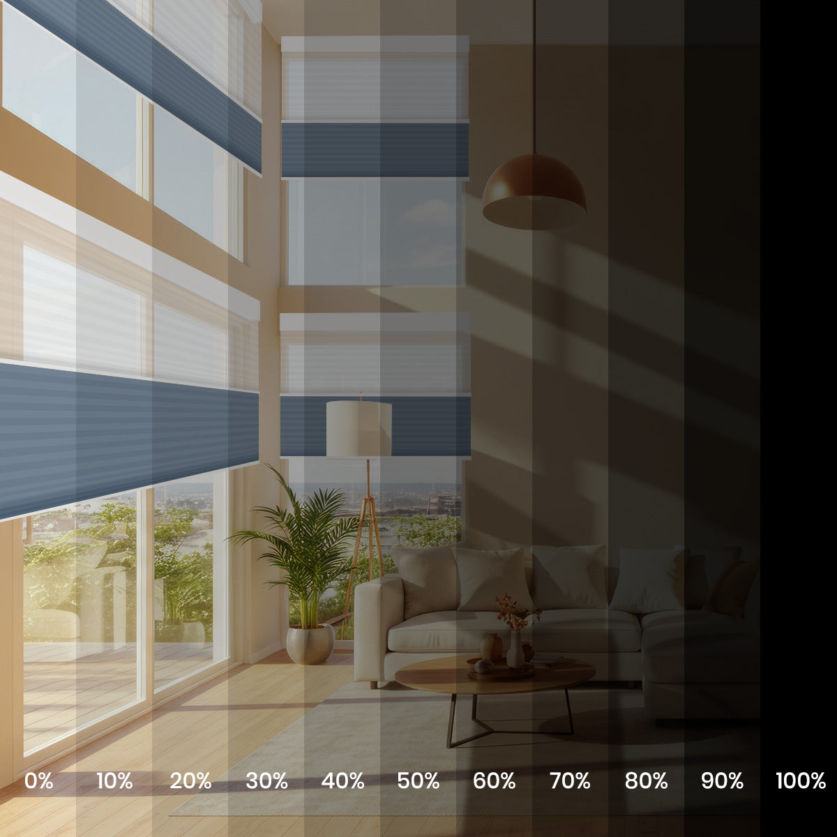 Fine-tune brightness and privacy at any time of day. Lower the top to let in sunlight while keeping the bottom closed, or raise the bottom for an outdoor view while shielding the upper section from glare.