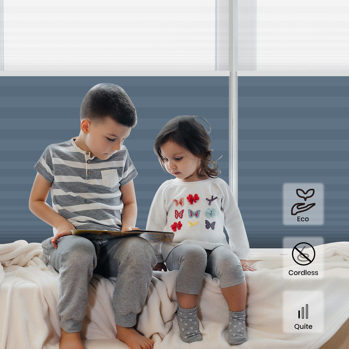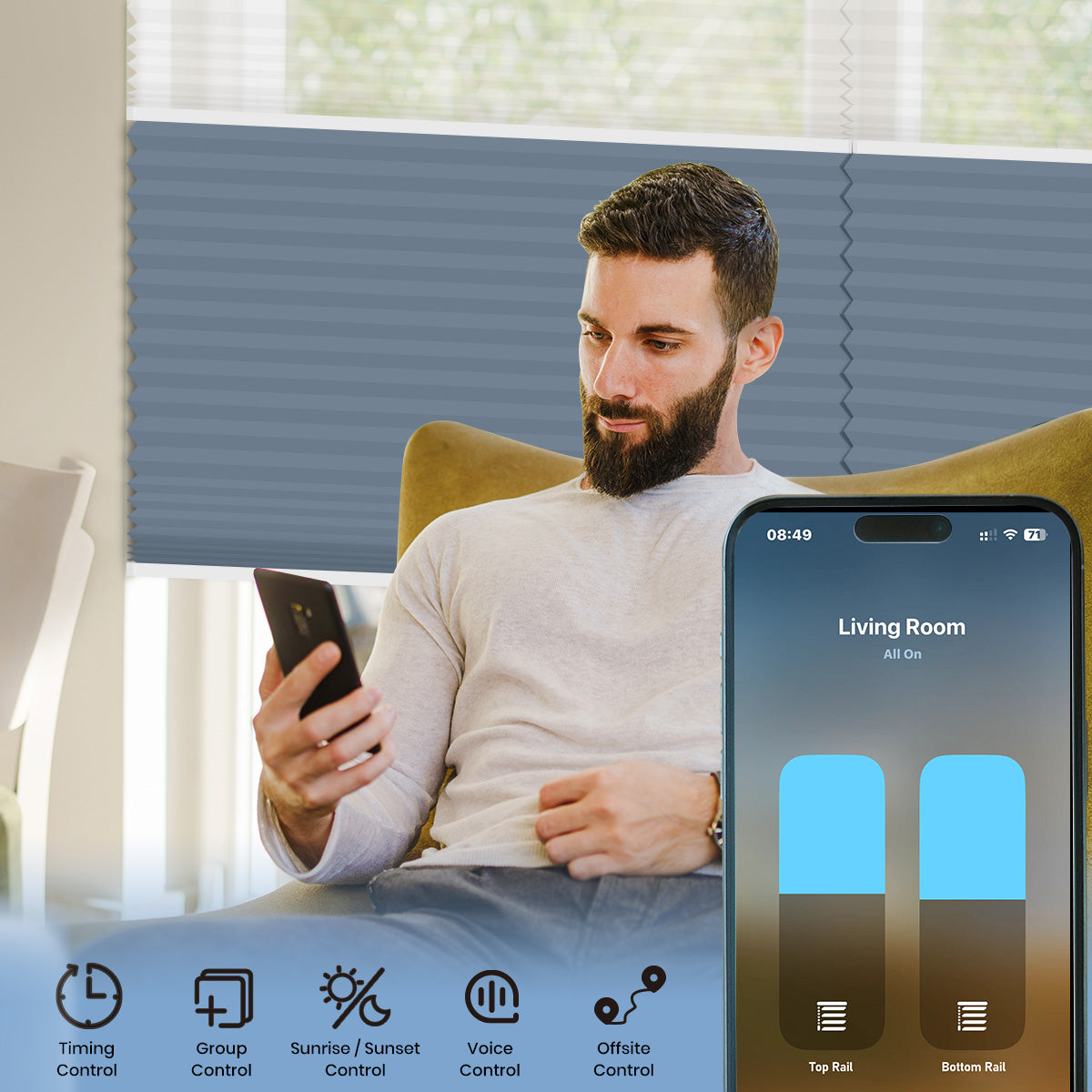 WEFFORT Dual Cell TDBU Shades - Motorized Blackout Cordless HoneyComb Blinds