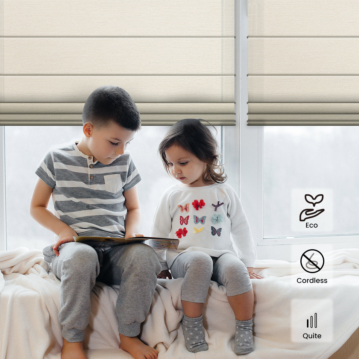 WEFFORT Motorized Smart Roman Shades - Custom Size Soft Light Filtering Blinds