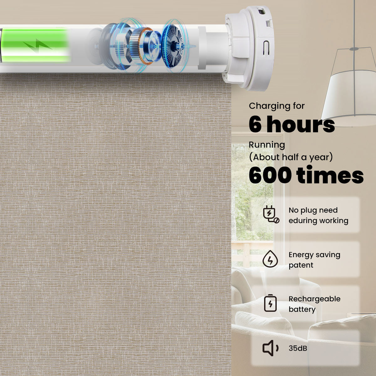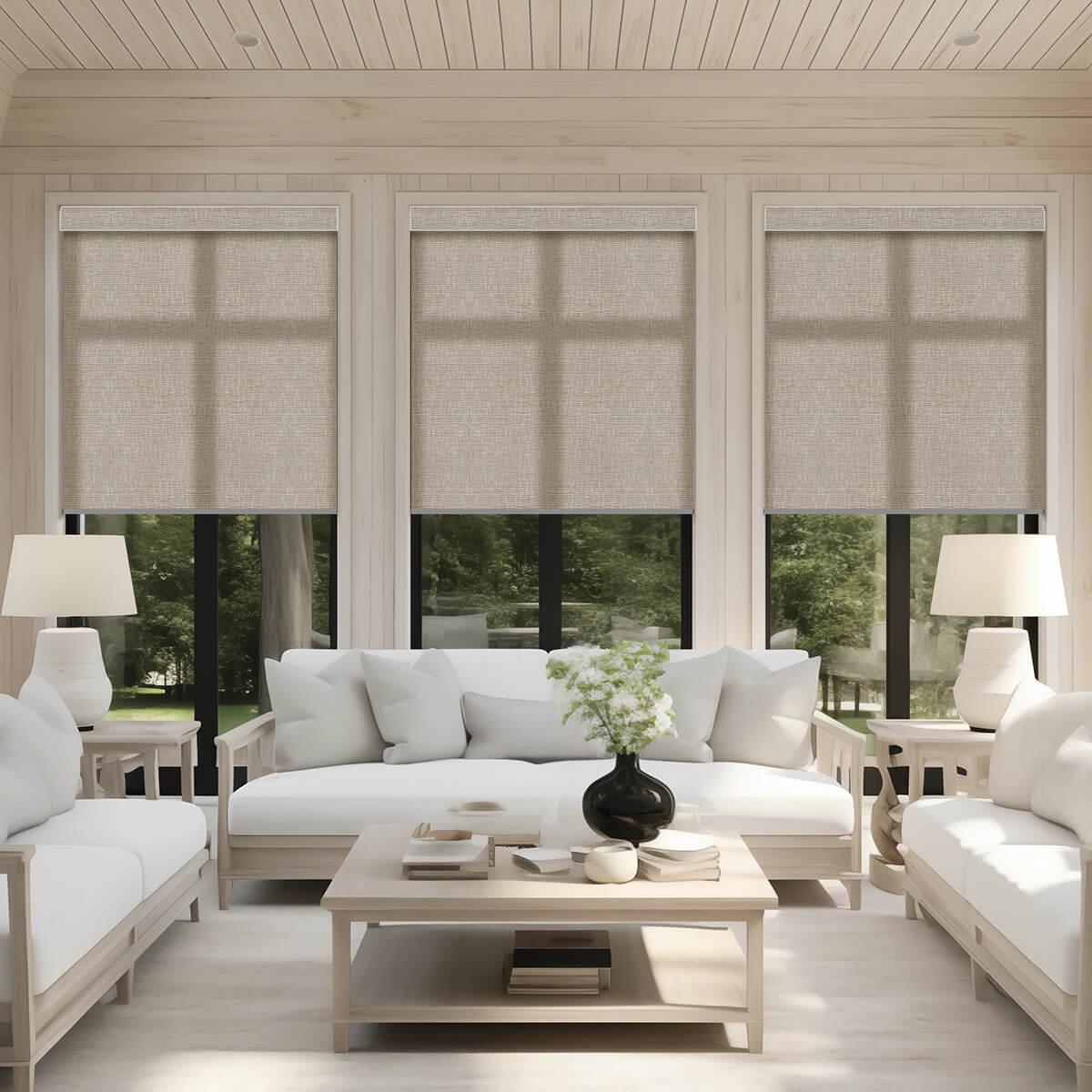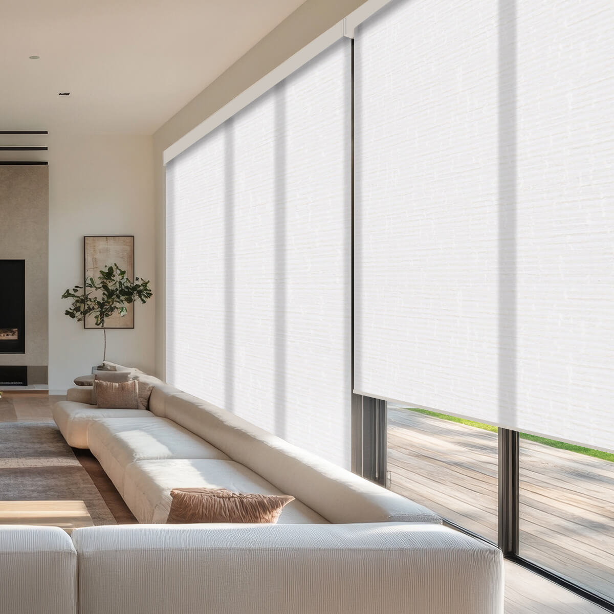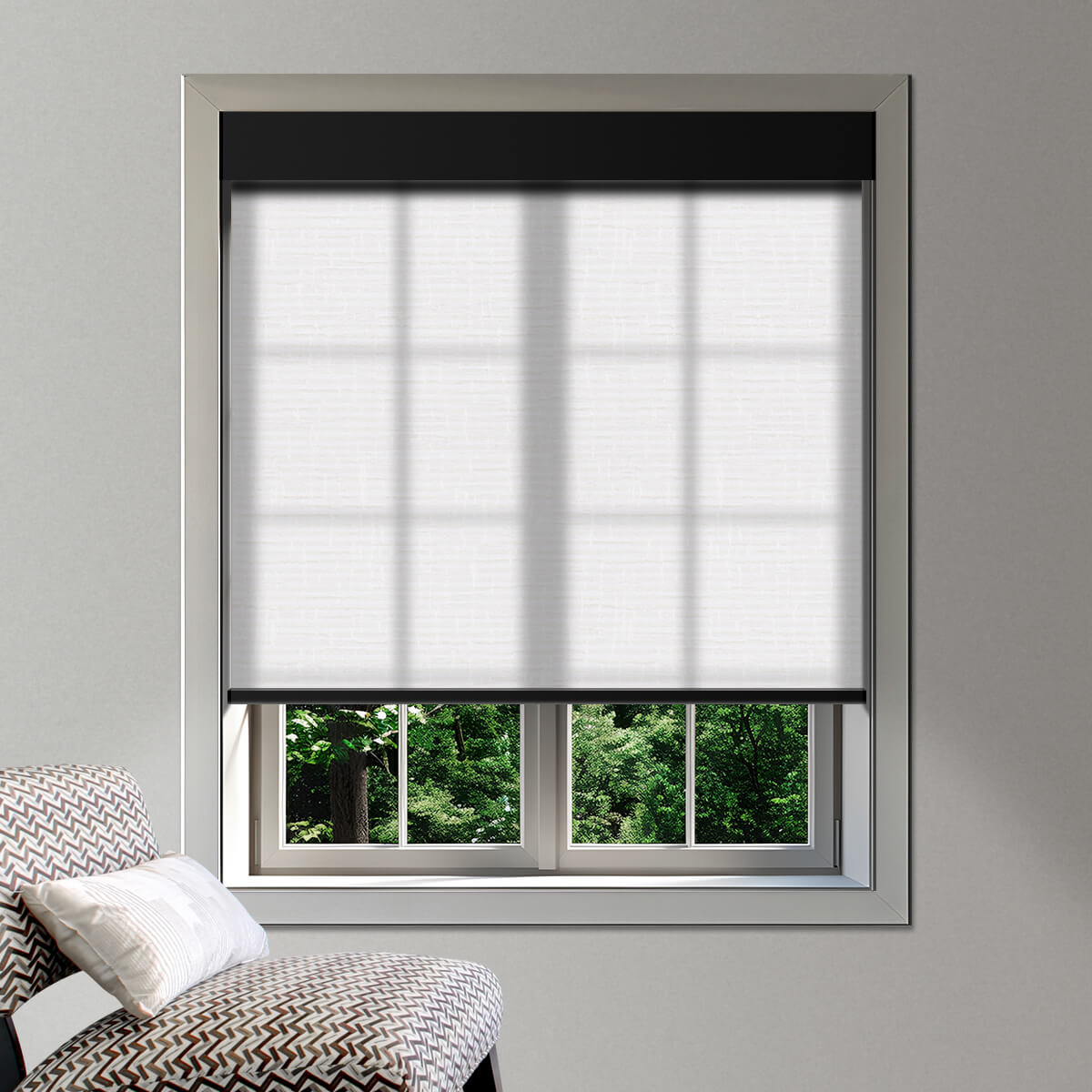 WEFFORT Motorized Roller Shades - Light Filtering Blinds with Slub Texture