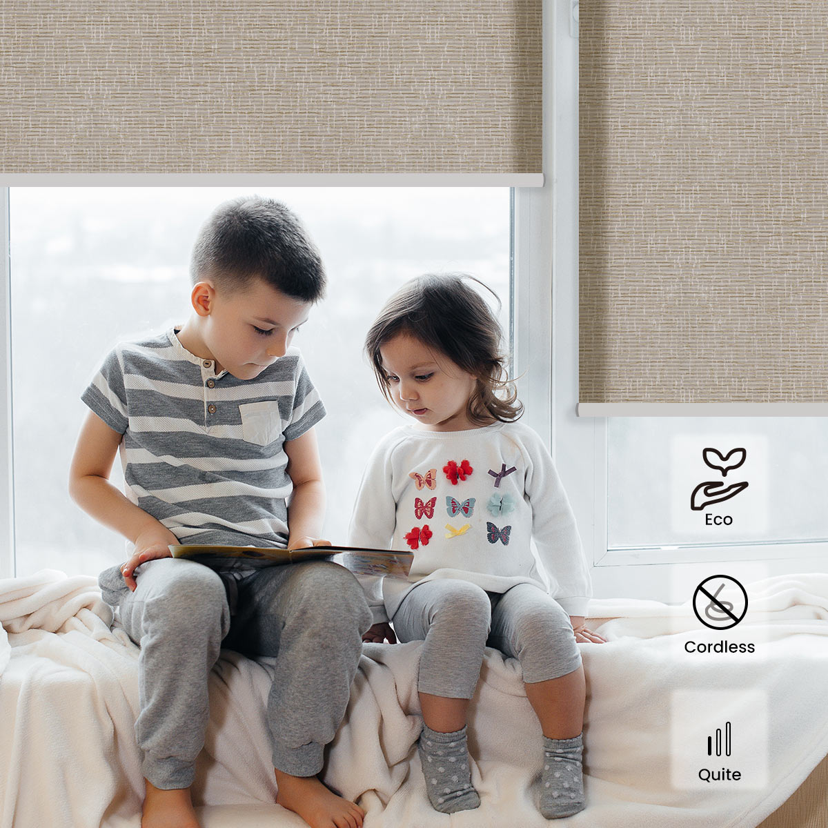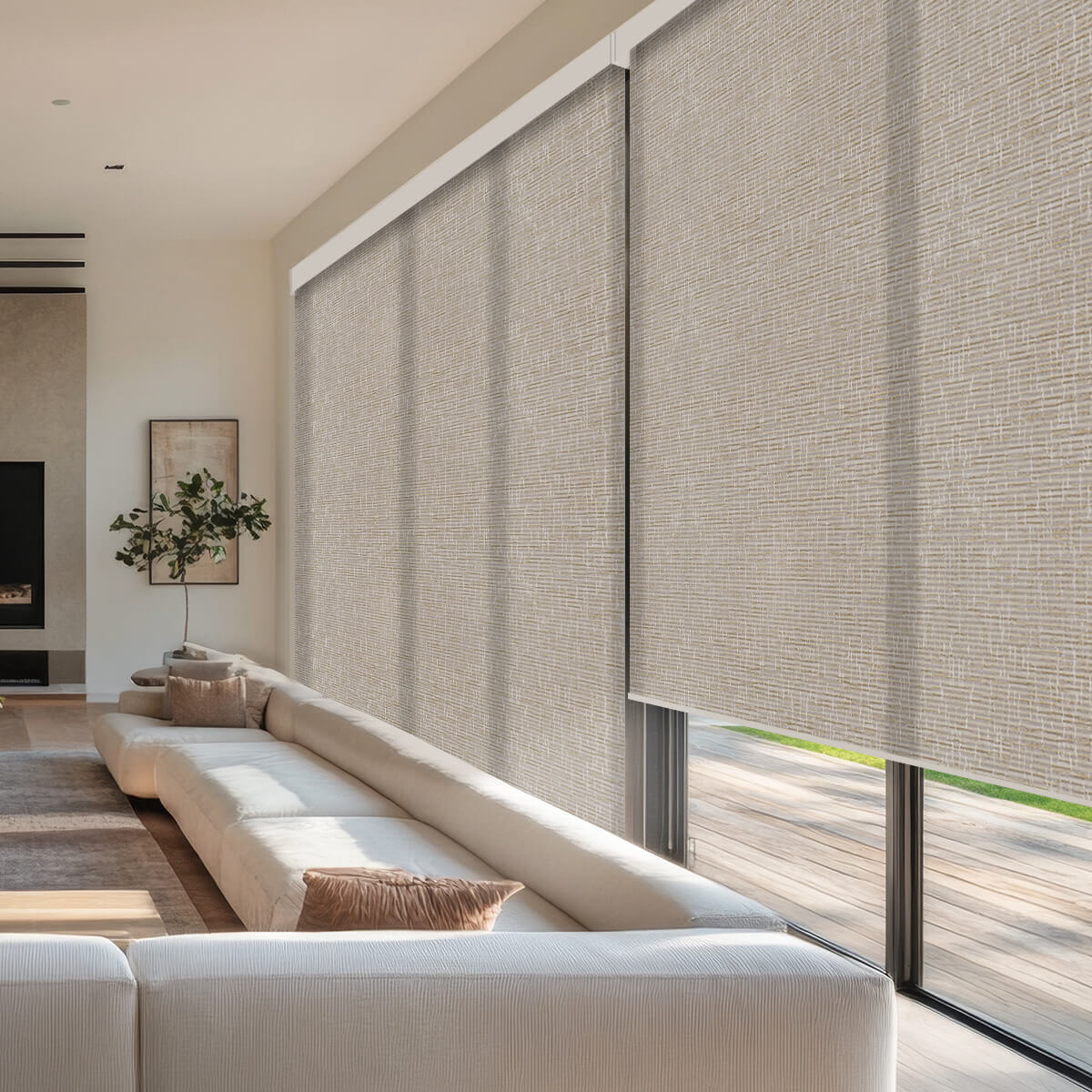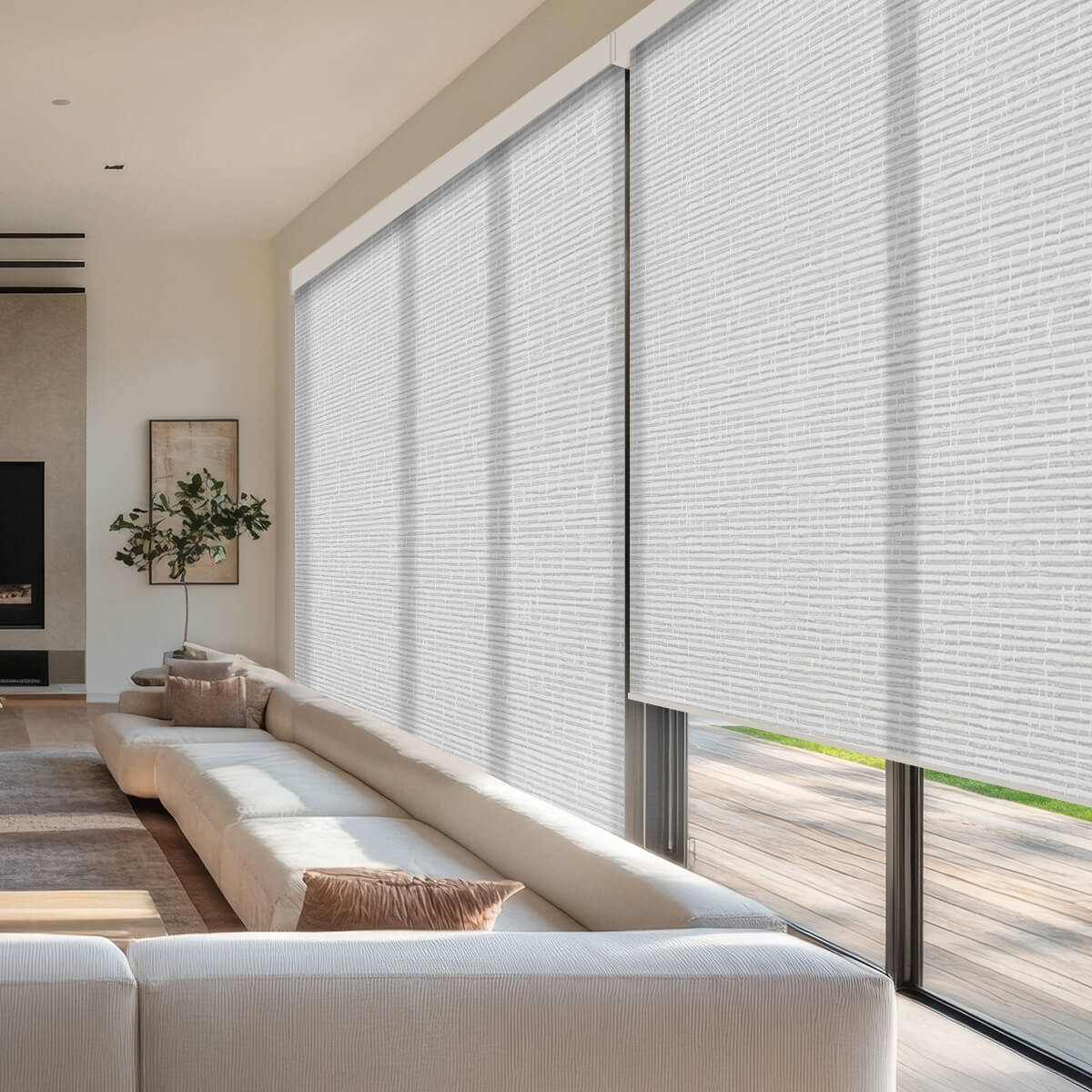 WEFFORT Motorized Roller Shades - Light Filtering Blinds with Slub Texture