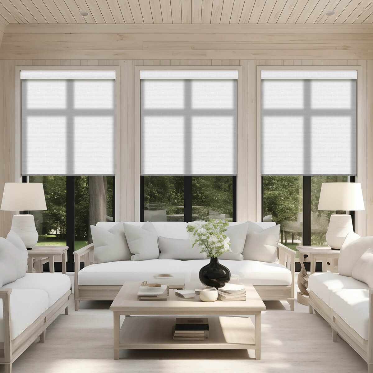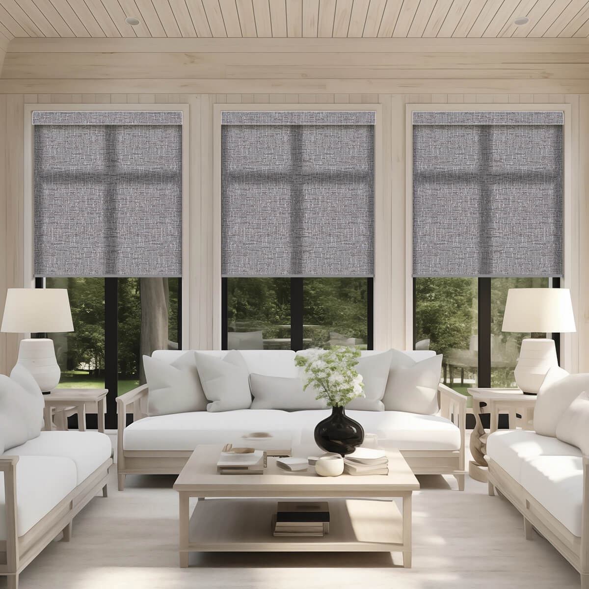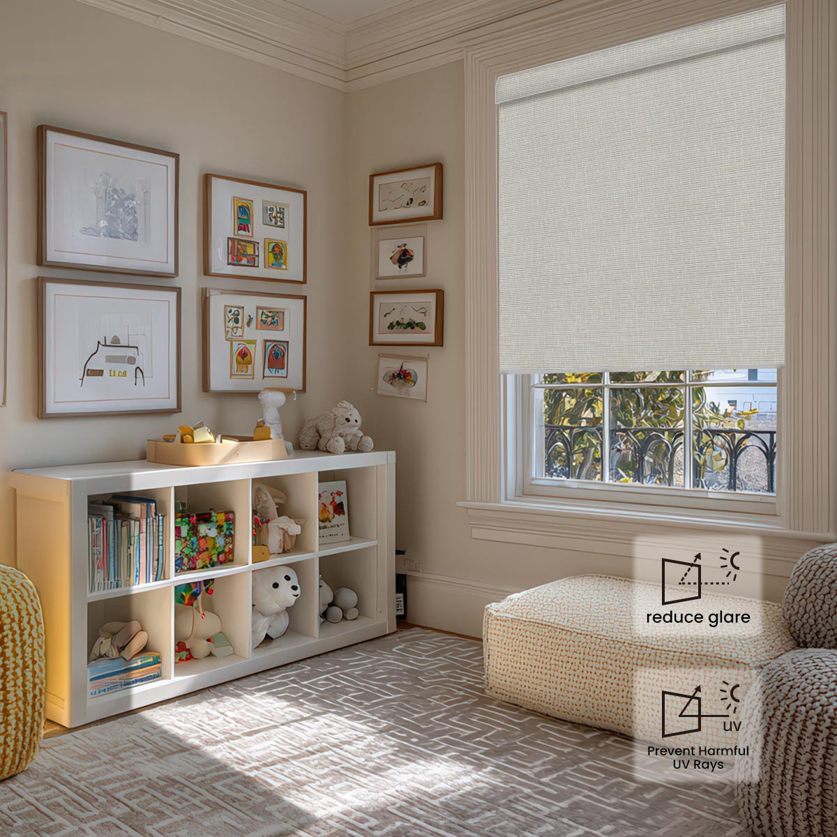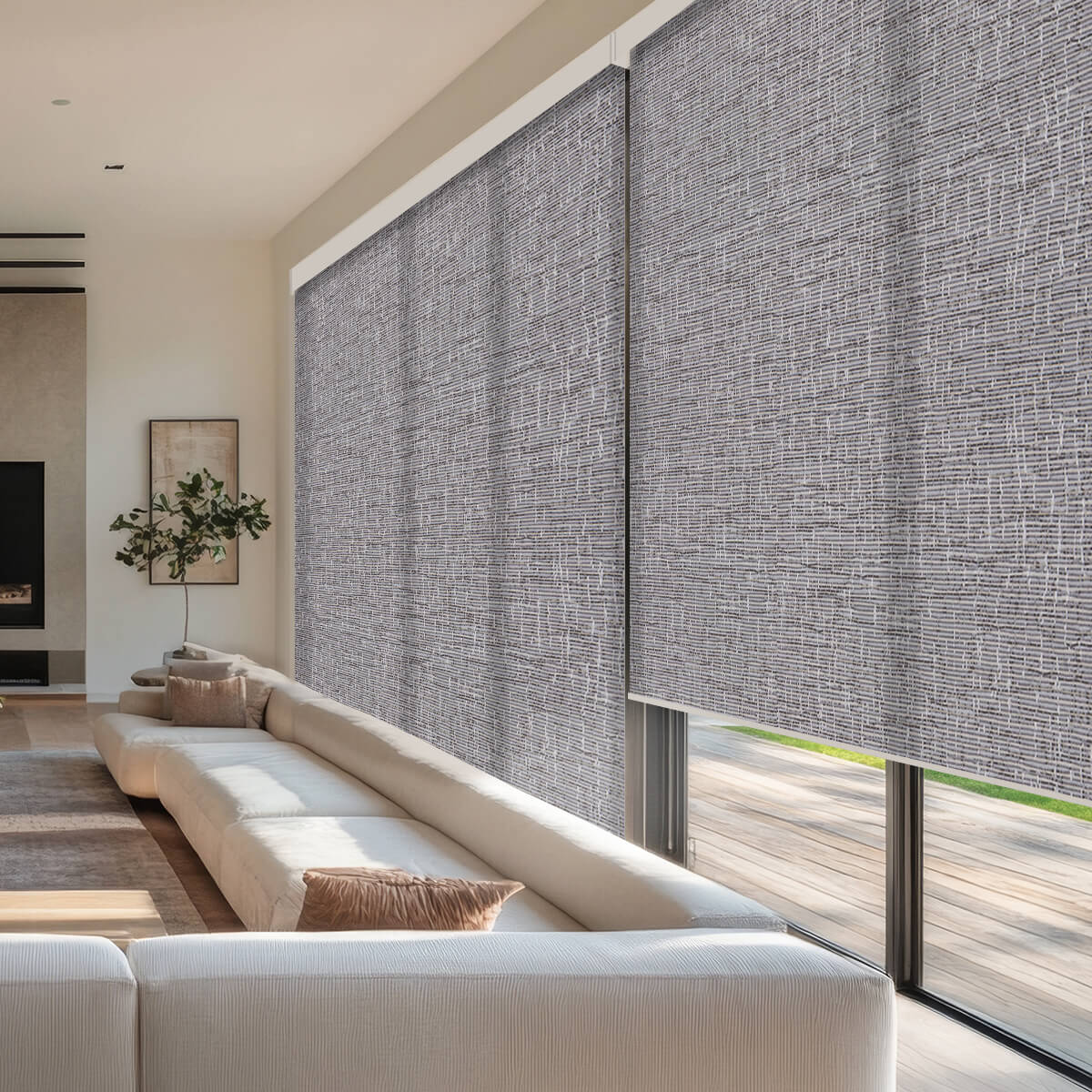WEFFORT Motorized Roller Shades - Light Filtering Blinds with Slub Texture